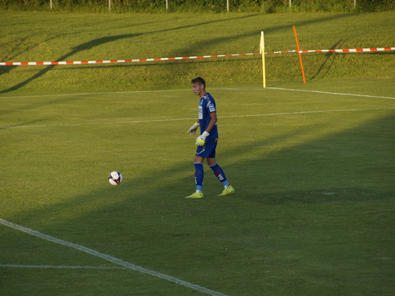 Vor 200 Zuschauern im Goldeckstadion zeigte die Heinle Elf von Beginn an eine gute Leistung und konnte sich einige Chancen herausspielen. Die erste Großchance des Spiels hatten allerdings die Gastgeber durch Michael Oberwinkler in der 10. Minute, sein Schuss ging allerdings an die Latte. In der 30. Minute ging dann Schwarz-Grün in Führung – Ecke von Julian Baumgartner und in der Mitte erzielte Arne Ammerer per Kopf das 0:1. Die Führung hielt allerdings nicht lange. In der 34. Minute erzielte Hajdarevic ebenfalls per Kopf nach einem Standard das 1:1. Mit diesem Spielstand schickte Schiedsrichter Karl Felgitsch, der mit durchaus umstrittenen Entscheidungen auffiel, die beiden Teams in die Pause.