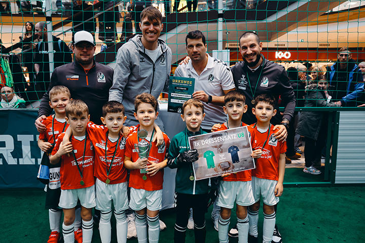 Die jungen Talente zeigten spannende Spiele und auch abseits des Rasens gab es ein unterhaltsames Programm mit Autogrammstunden, Interviews, Glücksrad, Maskottchen Siegfried und vielem mehr! In Summe kann der erste Wikinger von morgen Cup als voller Erfolg gewertet werden. Der Nachwuchs-Fußball der Region konnte sich in der Weberzeile auf einer tollen Bühne zeigen: Neben den vielen Verwandten der jungen Kicker verfolgten auch zahlreiche Passanten interessiert die spannenden Spiele am 12×9 Meter großen Streetsoccer Court im Erdgeschoss der Weberzeile. Die Turniersieger konnten sich über einen Trainingsshirt Satz für das gesamte Team von unserem Ausrüster Absolute Teamsport Sportswear freuen und für die Spieler des Turniers gab es SV Ried Trikots von den Profi-Spielern der SVR überreicht.